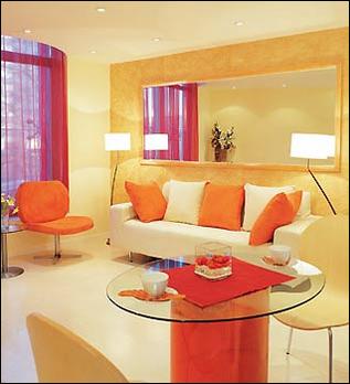 花之魅 人与花都是大自然中的一分子,人类从古到今、从简陋到精致的居室里不曾抛弃过花的香与美,花与人的生活已密不可分了。在年轻人的心目中,花更是浪漫与爱情的象征,无花,连睡觉也不踏实。一道优美弧线开启了卧室的浪漫情调,数瓶玫瑰在通透的玻璃后面羞答答地静静开放,在空灵、明朗、透彻中演绎着一个现代的传奇。 色之诱 浅亮的色彩能够造成一种开阔感,使居室显得更为宽敞;鲜艳的色彩在强烈的光线下一般会显得更加生机勃发。暖色能补偿光线不足,因而可用来赋予朝北或者较阴冷的居室以欢快的情调。着重于功能性与舒适感的开放式厨房,整体布局都非常简洁精炼,只从基础结构中寻求细致的变化。