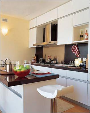美好岁月 每一张照片都有一个故事。周末的时候,一家人围坐在餐桌旁,边吃饭边话说当年,合着窗外暖暖的阳光,其乐融融。几乎贴满墙壁的照片,没有什么规则地排列着,花瓶、餐具、桌椅等物品虽然很多,看似复杂,却在颜色与形式上统一成对美好岁月的回忆和感谢。 我爱独处 谁说年轻人不懂烹饪乐趣,不会品味美食?看这间厨房就知道主人的高超手段。但是如果没有与众不同的地方,是无法显示出青春活力的,它的特点就在于岛形工作台前那把孤独的高脚凳。白色橱柜、木质地面是对自身体力和勤劳的信心;多眼灶台、复杂的各类炊具体现了对美味的重视程度;高脚凳则让人在第一时间里尝到劳动成果。 透明与变化 说到透明,自然就会想到玻璃,人们喜欢上玻璃家具,大都是由它独具的艺术性开始的。它晶莹剔透、高雅清新且与实用性完美结合,一般来说,玻璃家具形体小巧玲珑,视觉通透明亮,姿态自由洒脱,富于变化,不加掩饰地狂放,极富张力。 相信世界上可能没有另外一种材质能带给人如此美妙的感觉,就如同年轻人的心思:净得透明,却又富于变化。 镜之迷 如果房间墙壁上有一块大镜子,镜子里就可以反映出全屋的景象,似乎有一种房屋扩大了的感觉,其实是这种光学幻觉在起作用。镜子可使你感觉到房间多了一扇窗似的,并能获得另一个光源。白色沙发、橙色椅子和靠垫、同色的墙与地面,在光与影、虚与实中回旋,安静、高贵却时刻闪现着青春的色彩。