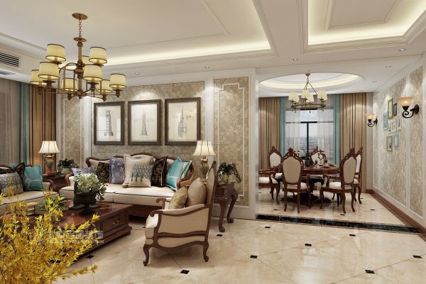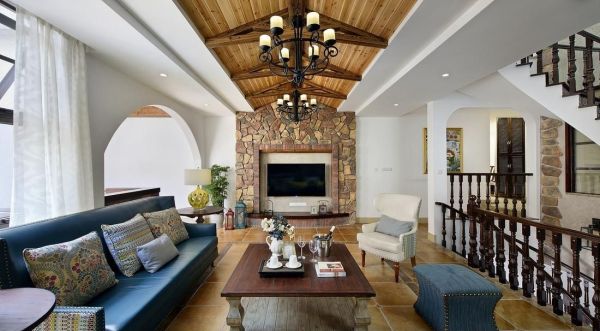 客厅是与客人见面的重要区域。装饰中的空间要求比其他空间简洁明了。美国人喜欢在装饰中使用各种古董砖和古董艺术品,使客厅充满艺术气息。